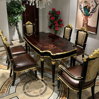 ダイニングテーブルセット手作り無地彫刻フレンチデザイン長方形6脚付き