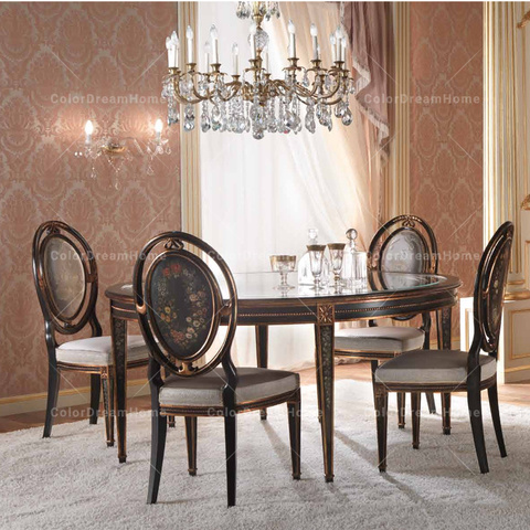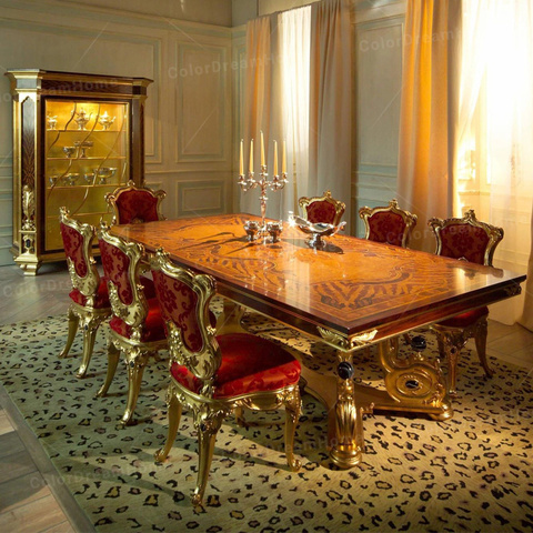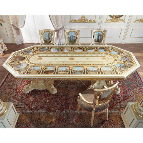 ダイニングテーブルセットフレンチロイヤル無垢材高級ダイニングルーム家具リーガル絵画付き椅子付き