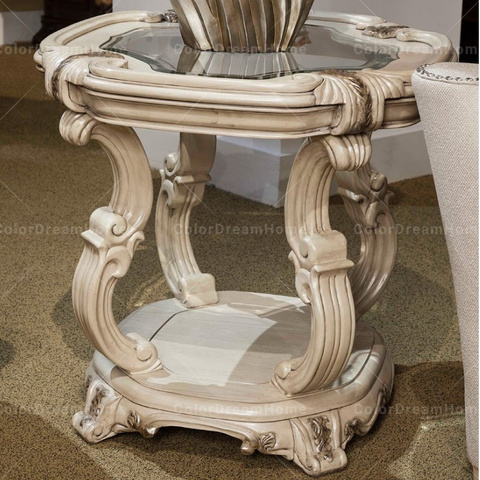 Meubles de salon de style ancien de luxe table d'appoint en bois sculpté à la main table d'angle en bois massif table d'extrémité en verre