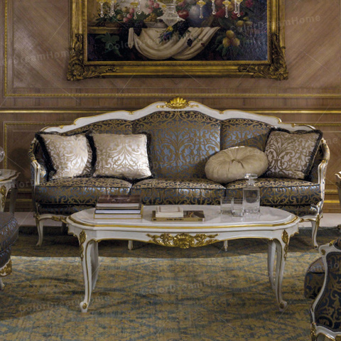프랑스 클래식 스타일 나무 소파 세트 손으로 조각 한 디자인 단면 소파가있는 우아한 거실 가구