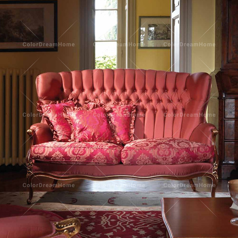프랑스 럭셔리 스타일 단단한 나무 조각 장미 레드 벨벳 고급 거실 소파 우아한 홈 호텔 가구