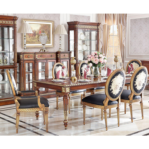 Royal Luxury-Juego de mesa de comedor de madera maciza, mobiliario de estilo clásico, 6 sillas y armario