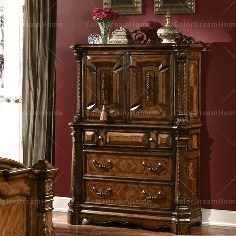 Высококачественная антикварная мебель для спальни, американский роскошный шкаф из массива дерева с двумя ящиками