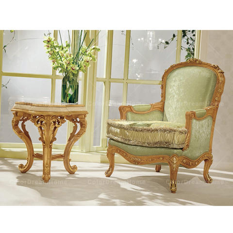 อิตาลีทำด้วยมือที่กำหนดเองเฟอร์นิเจอร์ Rococo แกะสลักเก้าอี้โรงแรมเก้าอี้ผ้าเลานจ์และตารางด้านข้าง